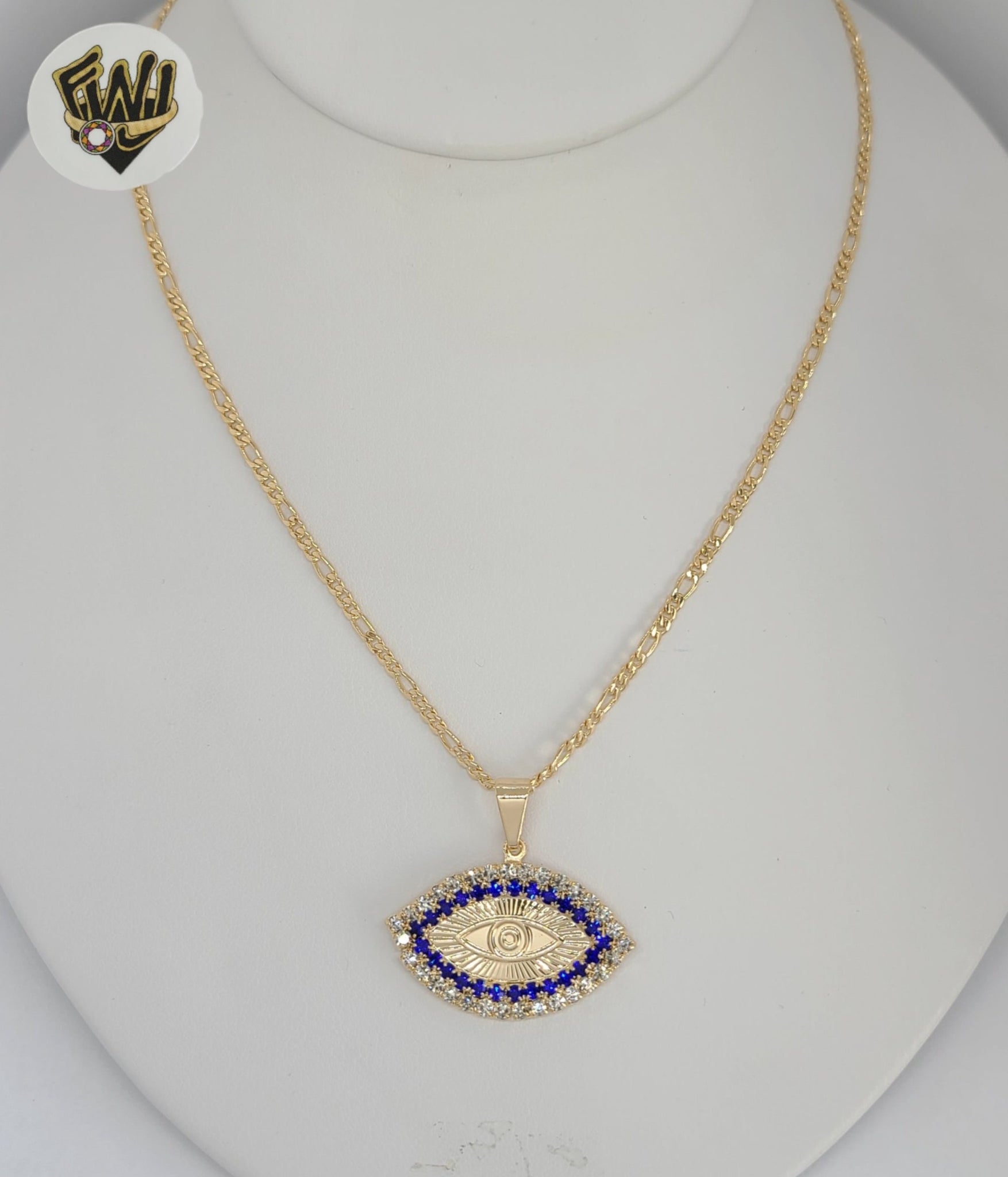 (1-6240-1) Gold Laminate - Figaro Link Evil Eye Necklace - 18" - BGF