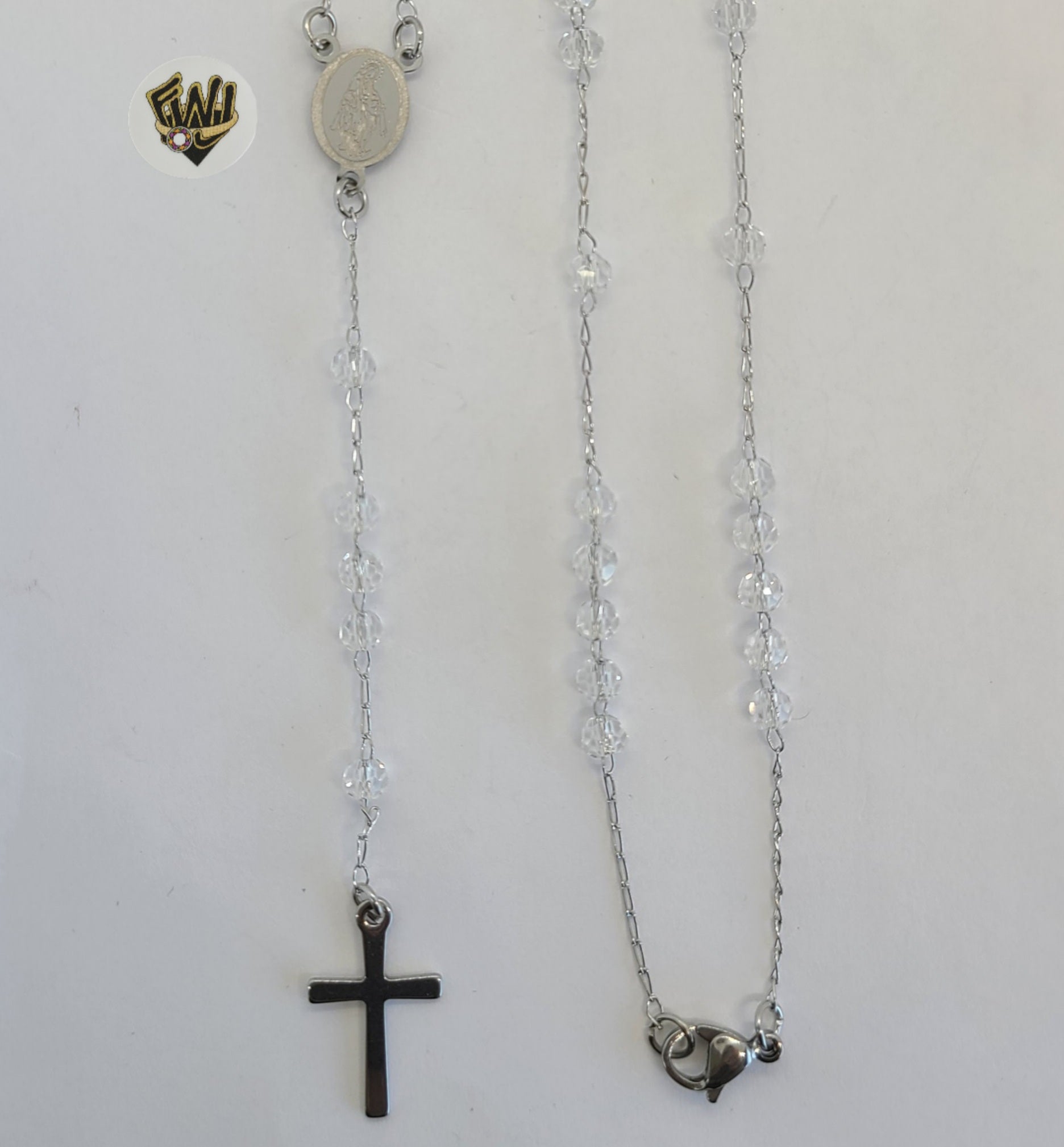Stainless Steel Clear Rosary Necklace.