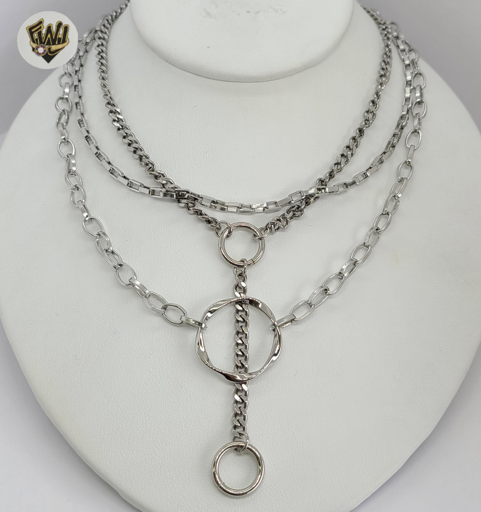 Stainless Steel Layered Chains Necklace.