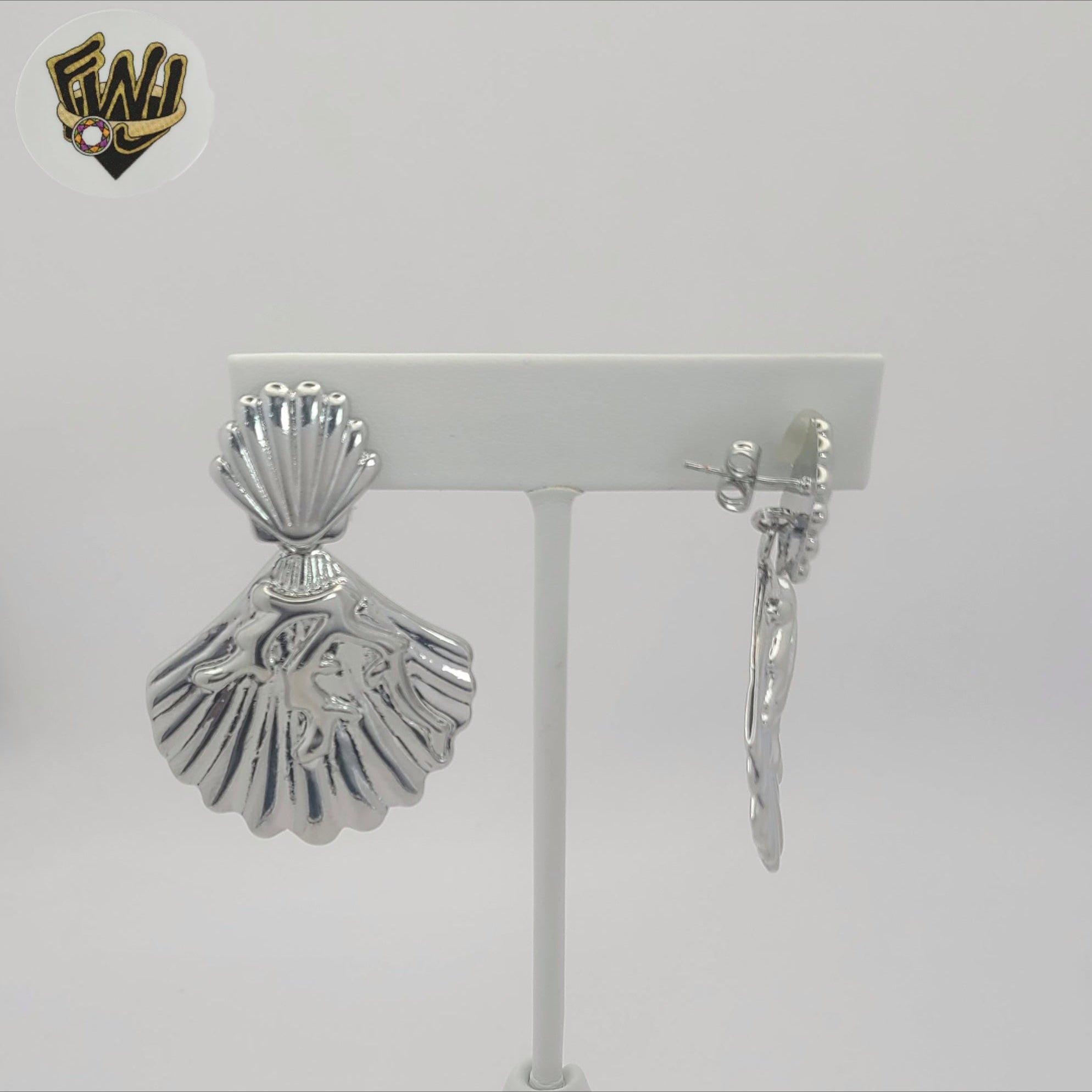 (4-2266-2) Stainless Steel -Shell Shape Dangle Earrings.