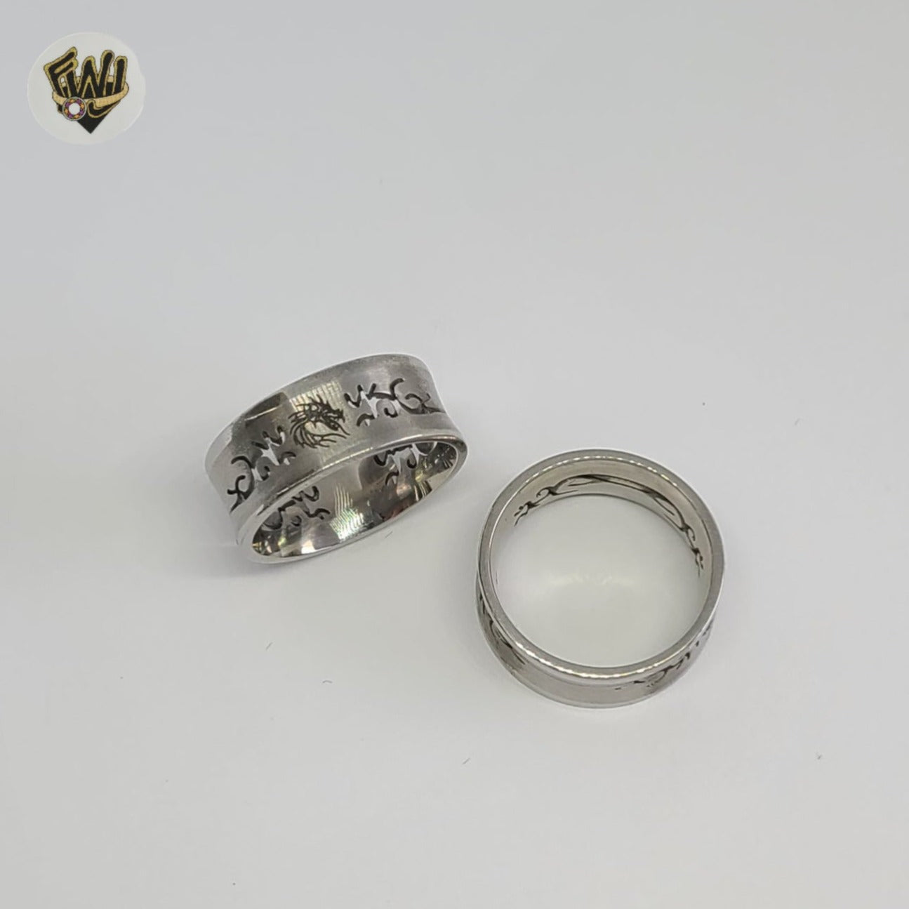 (4-0027) Stainless Steel - Carved Ring.