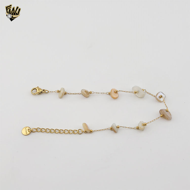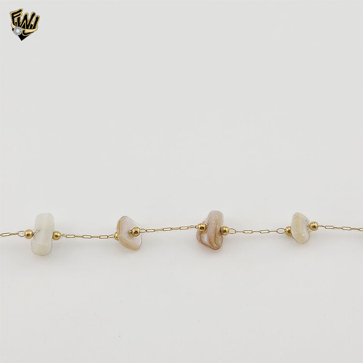["conchas de mar","paperclip link","puka shell","seashell","Shell","shell jewelry","Stainless Steel","stainless steel bangle","Stainless Steel Bracelet","Stainless Steel jewelry"]