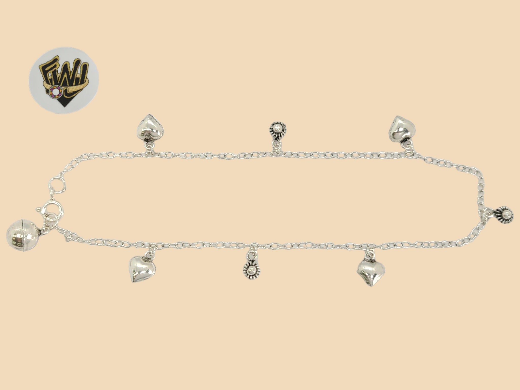 (2-0165) 925 Sterling Silver - 2mm Charms Anklet - 10"