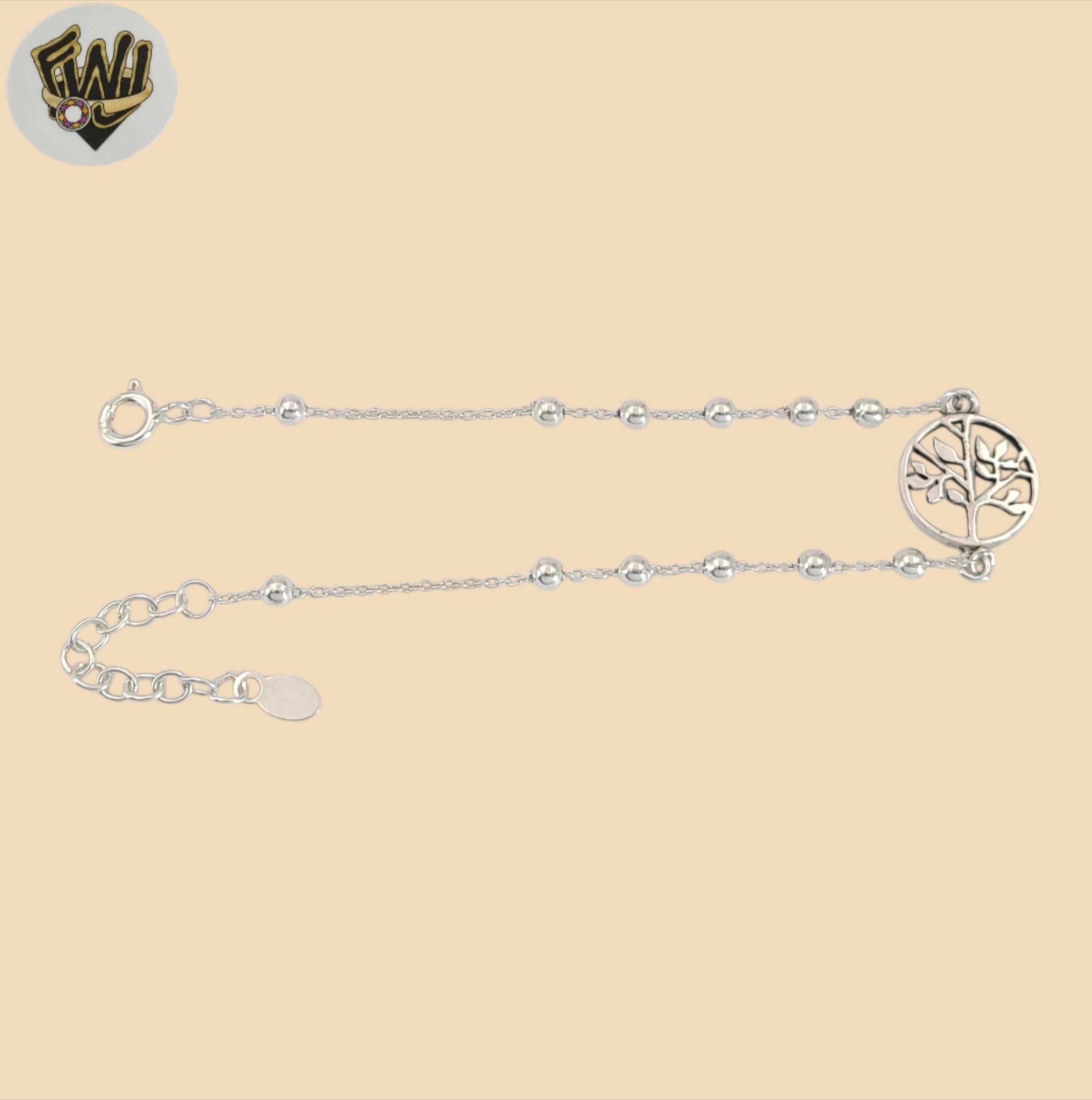 (2-0375-1) 925 Sterling Silver - 1mm Rolo Link Balls Tree of Life Bracelet.