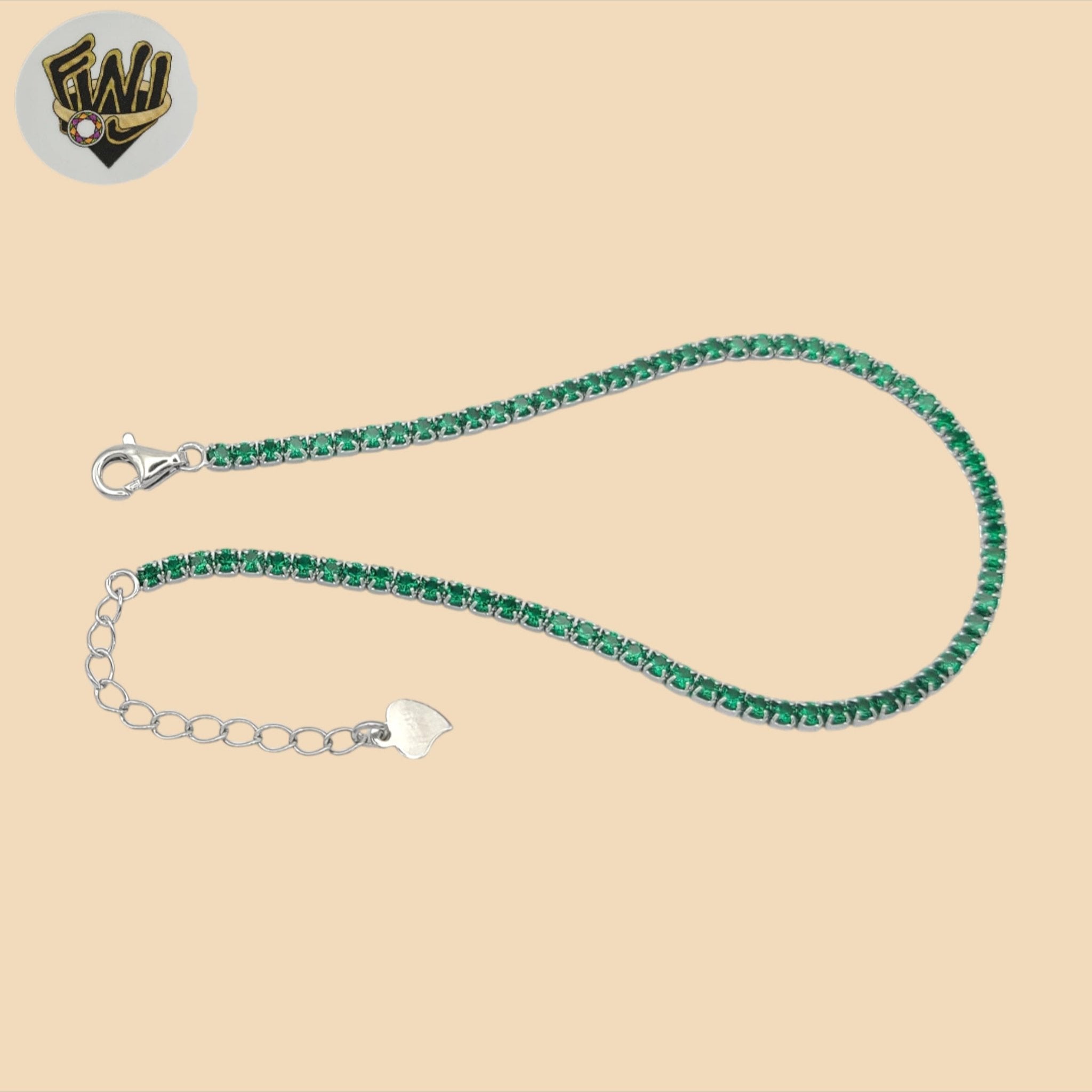 (2-0436) 925 Sterling Silver - 2mm Green Zircon Bracelet.