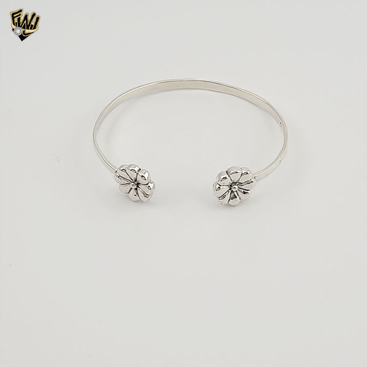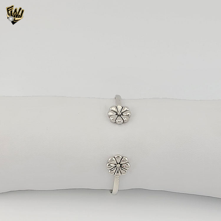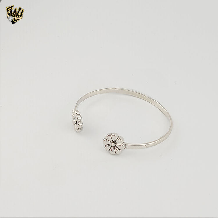 (2-0670) 925 Sterling Silver - Flower Open Bangle - 2.5"