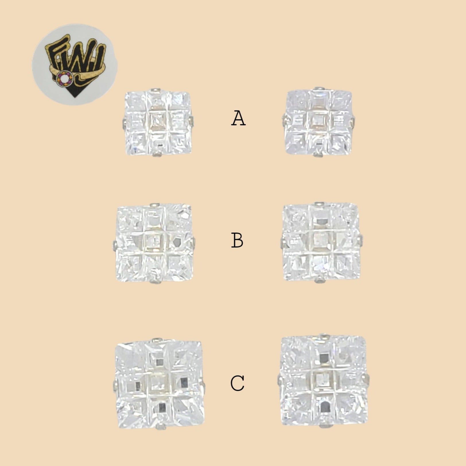 -Square Zircon Stud Earrings.