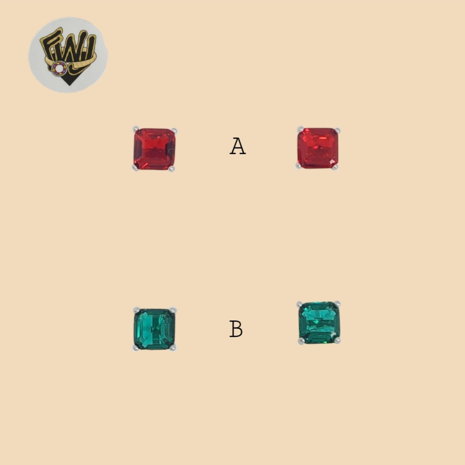 (2-3050) 925 Sterling Silver - Zircon Square Stud Earrings.