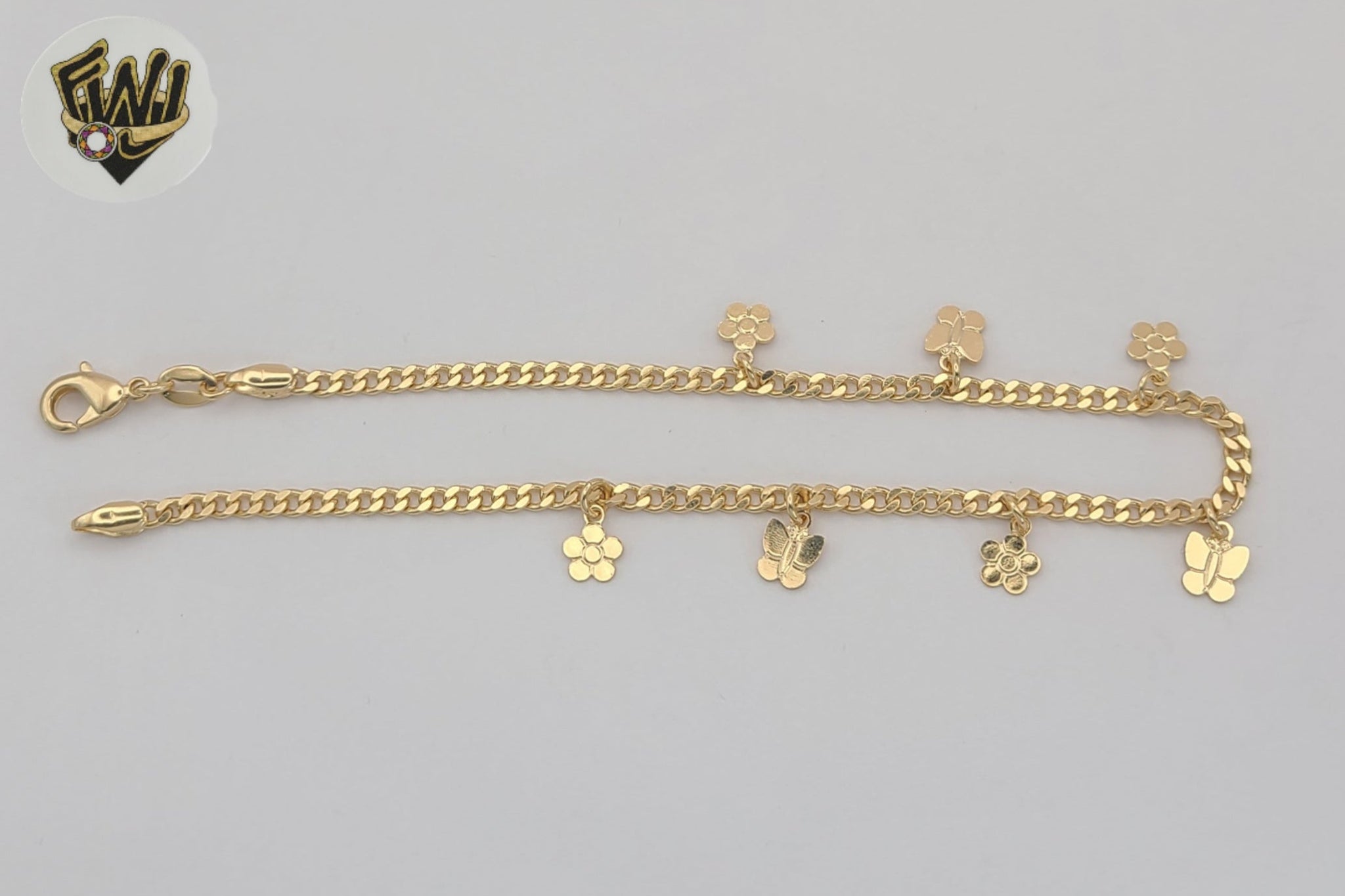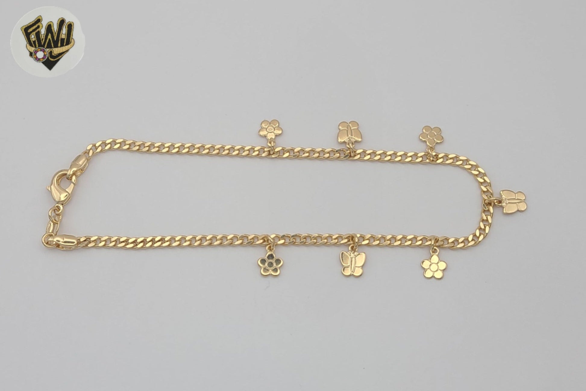 - Curb Link Flowers and Butterflies Charms Anklet.